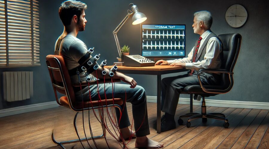 - Тестування: проведення серії запитань із фіксацією реакцій на поліграфі (пульс, дихання, потовиділення тощо).